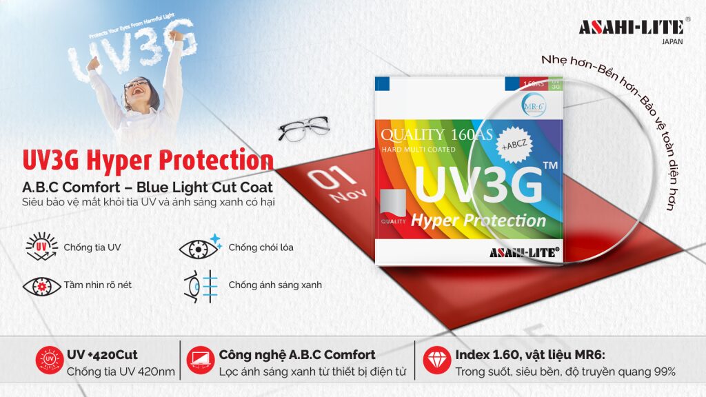 UV3G Hyper Protection – Tròng kính siêu bảo vệ mắt khỏi tia UV & ánh sáng xanh